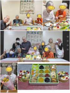 今日は利用者様のお誕生日でした。ケーキや花束、そしてご家族様からの贈り物でお祝いさせていただきました(≧∇≦)b