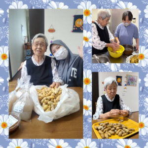 ご家族様から生落花生と刺身こんにゃくをいただきました。本当にありがとうございます。早速落花生を茹でて皆でいただきました。