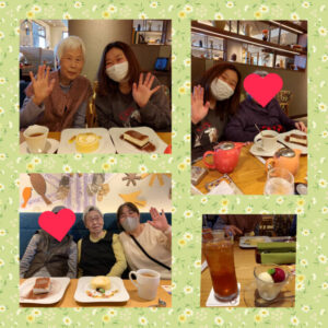 カフェでゆっくりお茶会。美味しいコーヒーや紅茶とデザートをいただきました。
