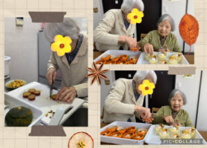 ハロウィンパーティに向けてデザートの仕上げを手伝って下さいました!「可愛くできたね!」と楽しく完成出来ました♪