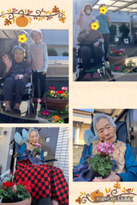 第二弾の植え替えも無事に終わり、皆様で早速飾ったお花を見にきました!「可愛いわね、珍しい色合いね」とお花を愛でていらっしゃいました(*^^*)