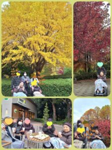 柏の葉公園へ♪赤や黄色の紅葉がとっても綺麗でした!たくさん歩いた後はカフェで一息です(*^-^*)