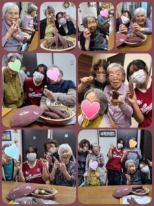 リクエストの焼き芋♪「大好き!幸せ(o´∀`)」と、焼きたて熱々を頂きました♪