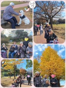 紅葉を眺めながら広い園内を歩いて来ました♪お汁粉で温まってひと休み(^ー^)♪かわいいワンちゃんとも出会いました!