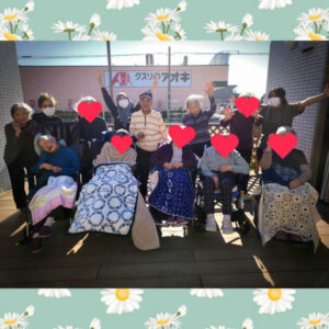 お天気が良く暖かかったのでみんなでウッドデッキで日向ぼっこ。隣の人もいっしょにのんびりしました。