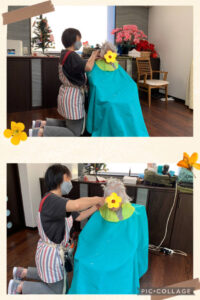 今日は訪問カットに来ていただき、皆様すっきりと✨「良いね〜短いとサッパリして良いよね〜」と皆様お互いに見合いながらお話しされていました(*^^*)