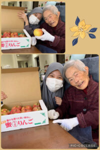 ご家族様より可愛いりんごをいただきました!「りんごですか?好きですよ」とにっこりと喜ばれていらっしゃいました。いつもありがとうございます(o^^o)