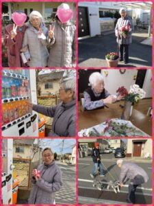 お散歩♪ ご近所さんに花をいただき、わんちゃんと触れ合い、帰りにヤクルトを買って一休み(^^)v