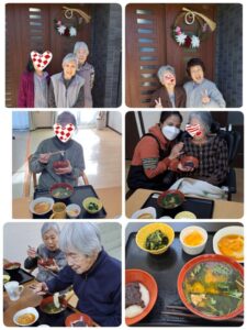 今日はお餅をついて、昼食に雑煮、からみ餅、あんこ餅を頂きました(^o^)/