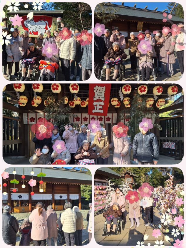 賑やかな神社へ行ってきました。日差しも暖かく「日頃の行いが良いからネ✨」と、笑顔一杯のお詣りです!