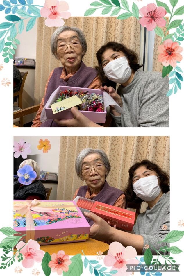 ご家族様よりお菓子をいただきました!「持ってきてくれたの?わぁ!」ととても喜ばれていらっしゃいました!いつもありがとうございます(*^^*)
