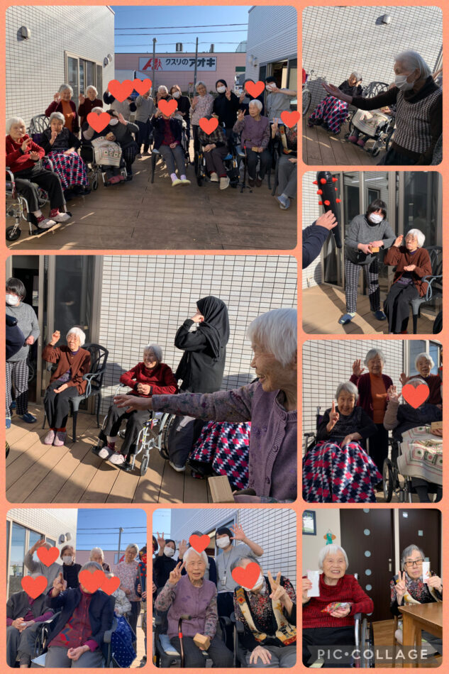 今日は暦では立春にあたり、日差しの暖かい中ウッドデッキに出て皆さんで「鬼は外福は内〜」と元気いっぱいに豆まきをしました!(*^^*)