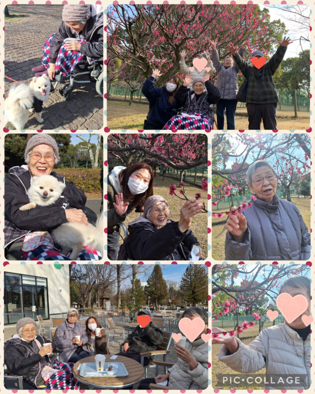紅梅を見に行ってきました!丁度見頃の梅を見ながら公園をお散歩、途中可愛いわんちゃんとも会いました🐶 休憩は温かい飲み物で一息つきました☺️