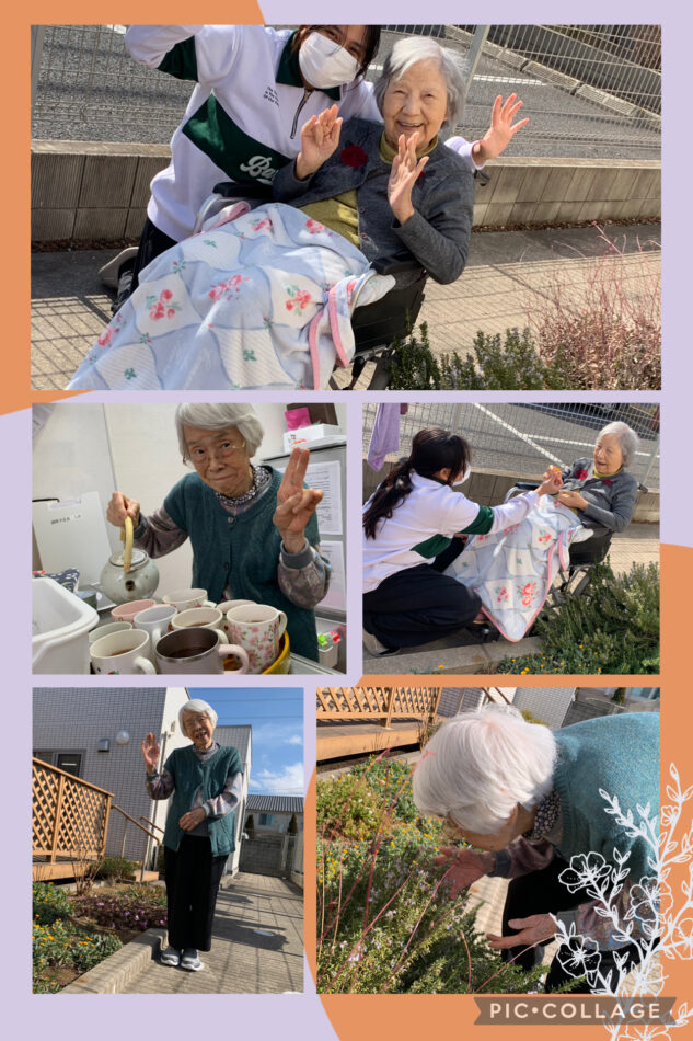 暖かい日になりウッドデッキに出てみたり、花壇へお花を見に行ったりと気持ちの良いひとときでした🌷リビングに戻ってからは皆様でお茶をいただきました✨