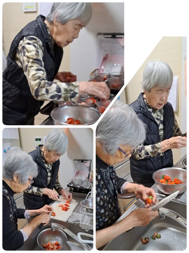 昨日お買い物で買ってきたイチゴを皆さんにと盛り付けまでしてくださいました❗