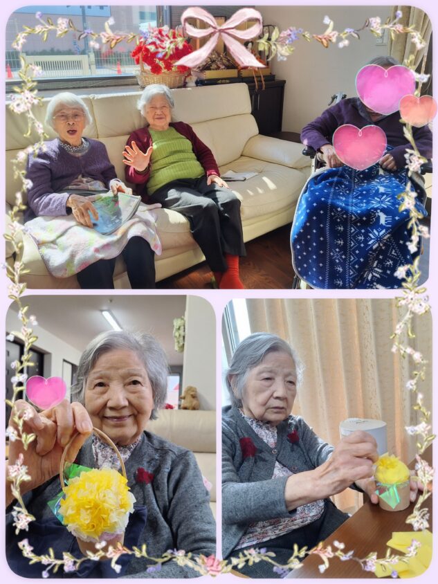 日向ぼっこをしながらのおしゃべり♪花かご作りも始まりました✨出来上がりが楽しみです💕