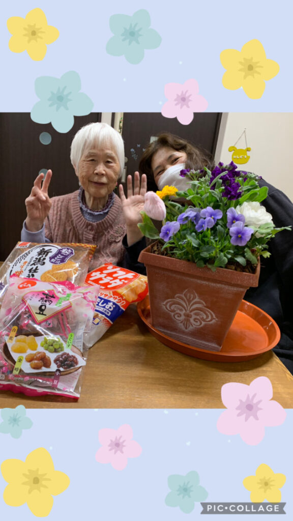 ご家族様より素敵なお花とお菓子をいただきました!「綺麗だね!」とお部屋へ飾られていらっしゃいました💐
