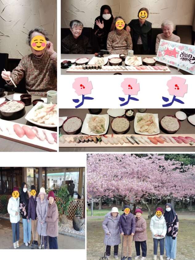 今日はお誕生日でした☺️リクエストの和食でお祝いさせていただきました🤩帰りに公園で河津桜見物もしました🌸