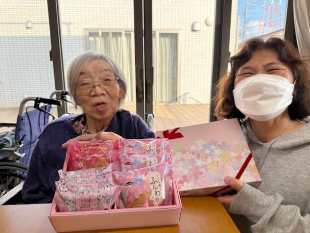 お菓子をいただきました! 「美味しそうだねぇ~ お姉ちゃんから?」と、とっても喜ばれていらっしゃいました😊