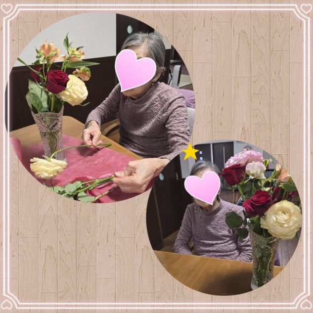 ご家族様からいただいたお花を花瓶に飾りつけました🤗