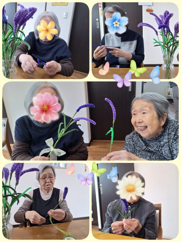 モールでラベンダーを作っています!「部屋にも飾ろうネ♪」と、皆さんで楽しく制作中です🌼