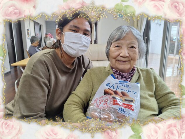 ご家族様より、あんドーナツを頂きました。「美味しいのよねー♪嬉しいわ!」と、とっても喜ばれておりました。いつもありがとうございます!