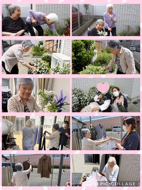 庭に出てお花摘みへ。 花瓶に挿しました🌼 その後は、大量の洗濯干し