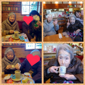 今日はコメダ珈琲店でおやつ。美味しい珈琲とサンドイッチを食べながら皆でお喋りを楽しみました。