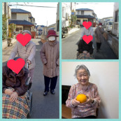 今日はお天気が良かったので午前、午後の2回お散歩にいきました。午後の散歩の時、道の途中にあるお家から大きなみかんをいただきました。