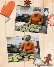 お夕飯の準備中です。おかずの盛り付けをお手伝いいただきました。「美味しそうね!」と、お夕飯が楽しみです(o^^o)