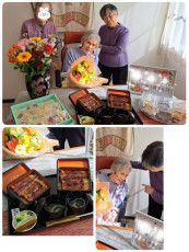 92歳になられたご利用者様のお誕生日を大好きな鰻とご家族様から頂いたお花やお菓子のプレゼントでお祝いしました‼️終始笑顔で喜んで頂けました😊