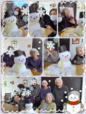午前中は雪でウッドデッキが真っ白!皆さんでかわいい雪だるまを作りました♪