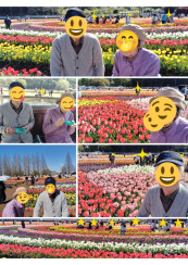 お化粧をしてからお出かけ♪ チューリップを見に行って来ました😊 「何色が好き?紫かな~白もいいねぇ~黄色も素敵だねぇ~赤も綺麗。全部だね」と🥰 満開のチューリップを眺め...