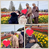 チューリップを見に行って来ました🌷 小さな子供やワンちゃんに話しかけ、「可愛いねぇ~ また、会おうね💖」と、会話を楽しまれていらっしゃいました。帰る時は、「俺が押すよ!...