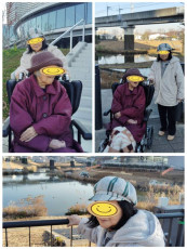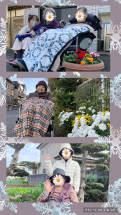 お庭に出てプランターのお花を見に行きました(^^) お散歩では途中、冬の花が咲いていました!足を止めながら(*^^*)