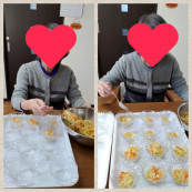 夕ご飯の盛り付け。ちゃんと均等に分けるのって結構難しいね。